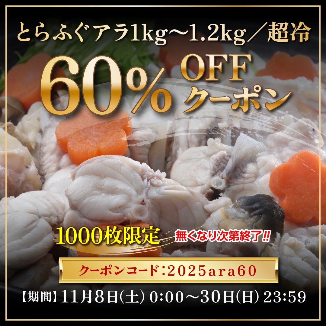 送料無料「とらふぐアラ!お得パック1kg/超冷」便利な小分け真空パック